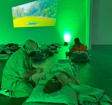 Events have included community acupuncture, sound baths, installation art, free food, and educational and social components. Paolo is available for online and in person wellness retreats, workshops, and wellness events.